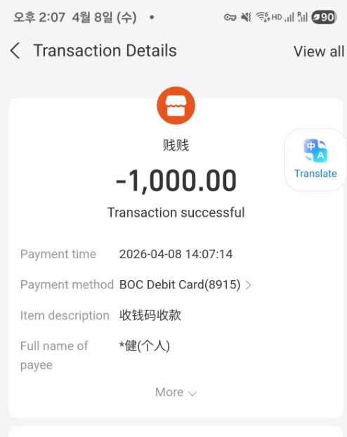 [dadaland]알리페이 송금/내가 보내야 할 금액:9,0742위안(2)